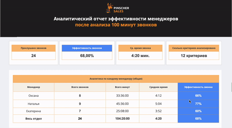 Еженедельно презентуем отчеты с показателями, влияющими на конверсию отдела продаж.