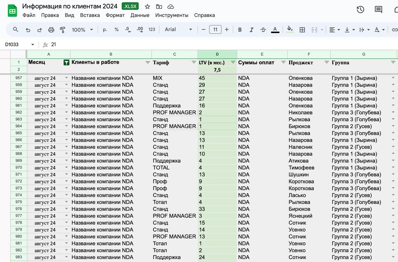 Не важно сколько новых клиентов, главное для бизнеса услуг сколько компаний и сколько месяцев они остаются с нами. На данный момент на сопровождение 148 компаний, которые продляются из месяц в месяц.